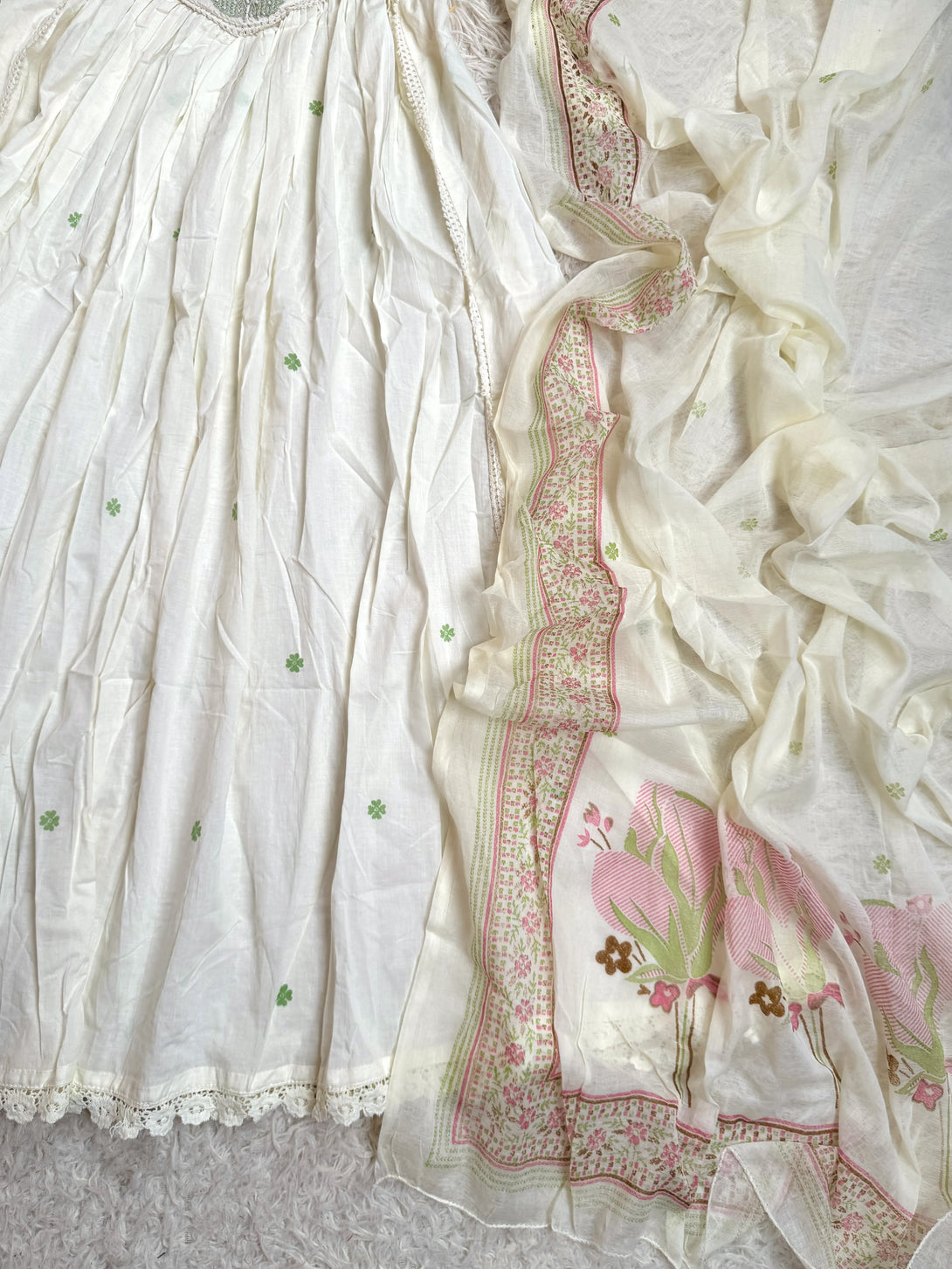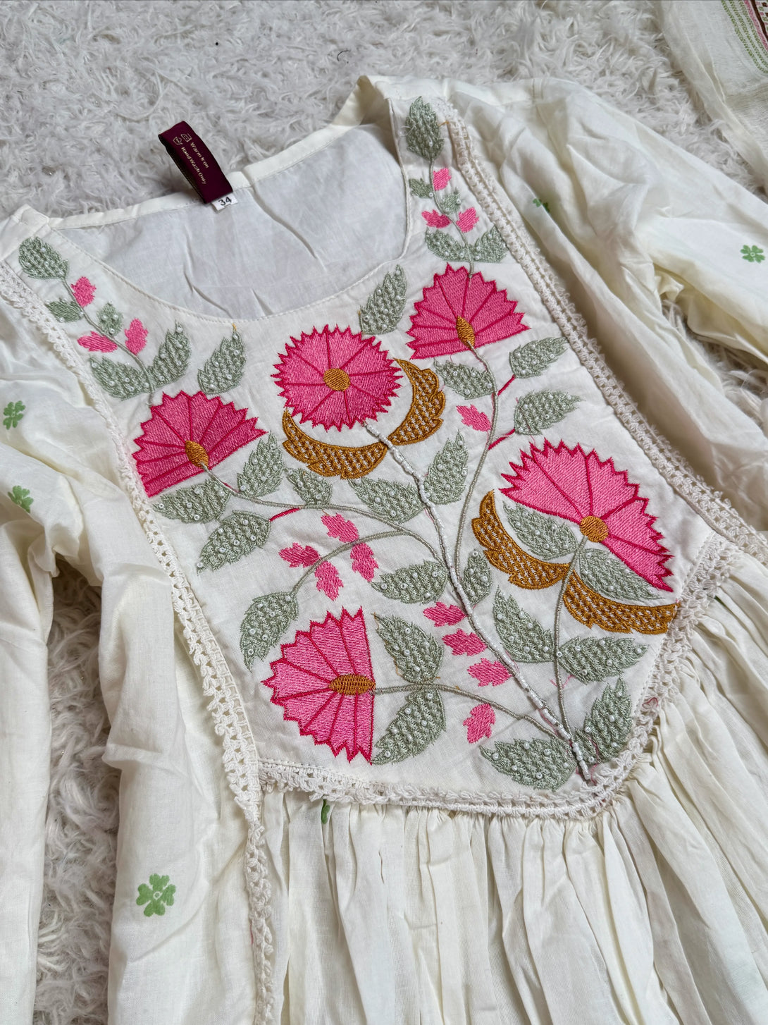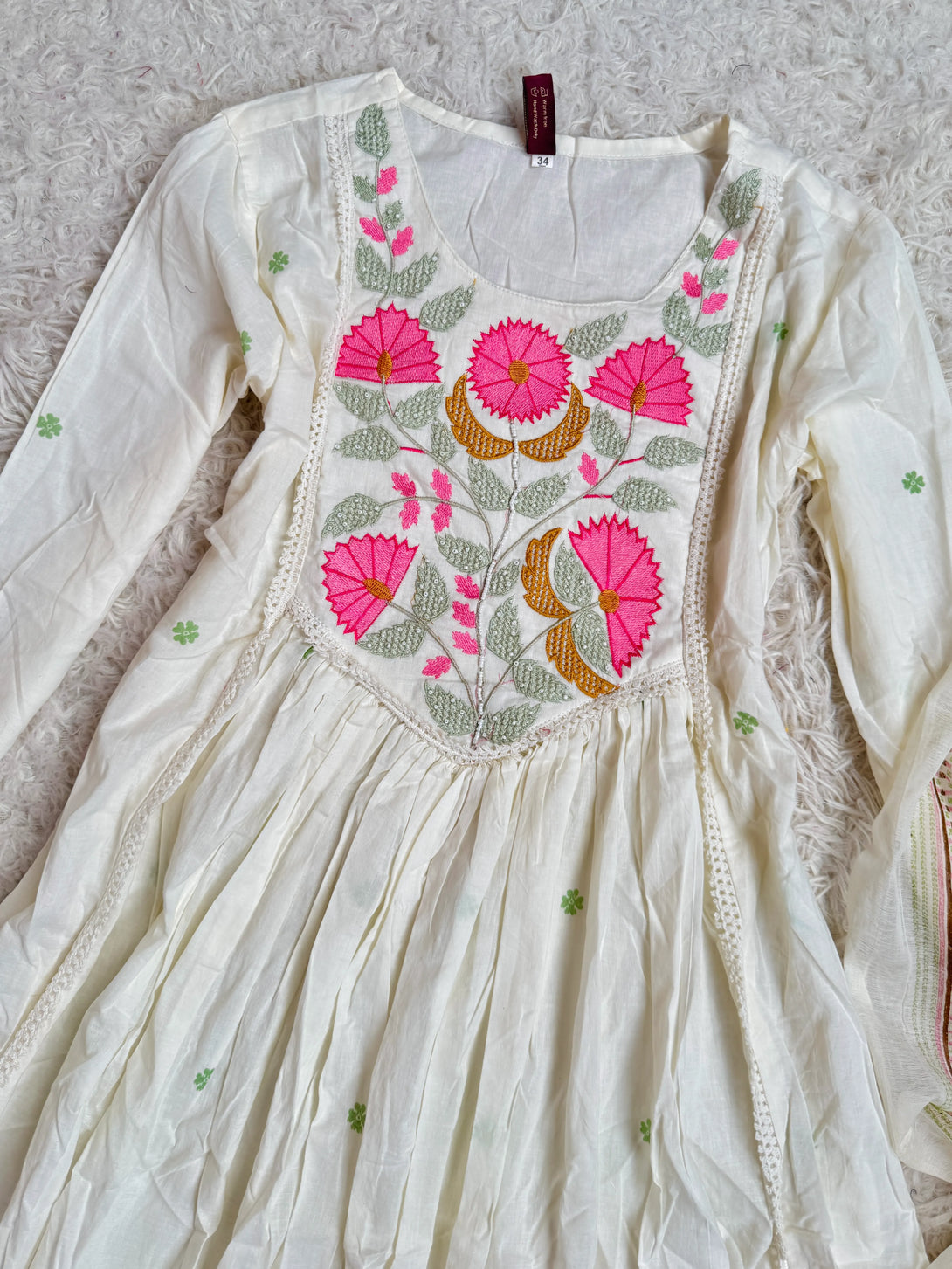 Off-White Embroidered Super-Flare Anarkali-Kurti-Dupatta-Set