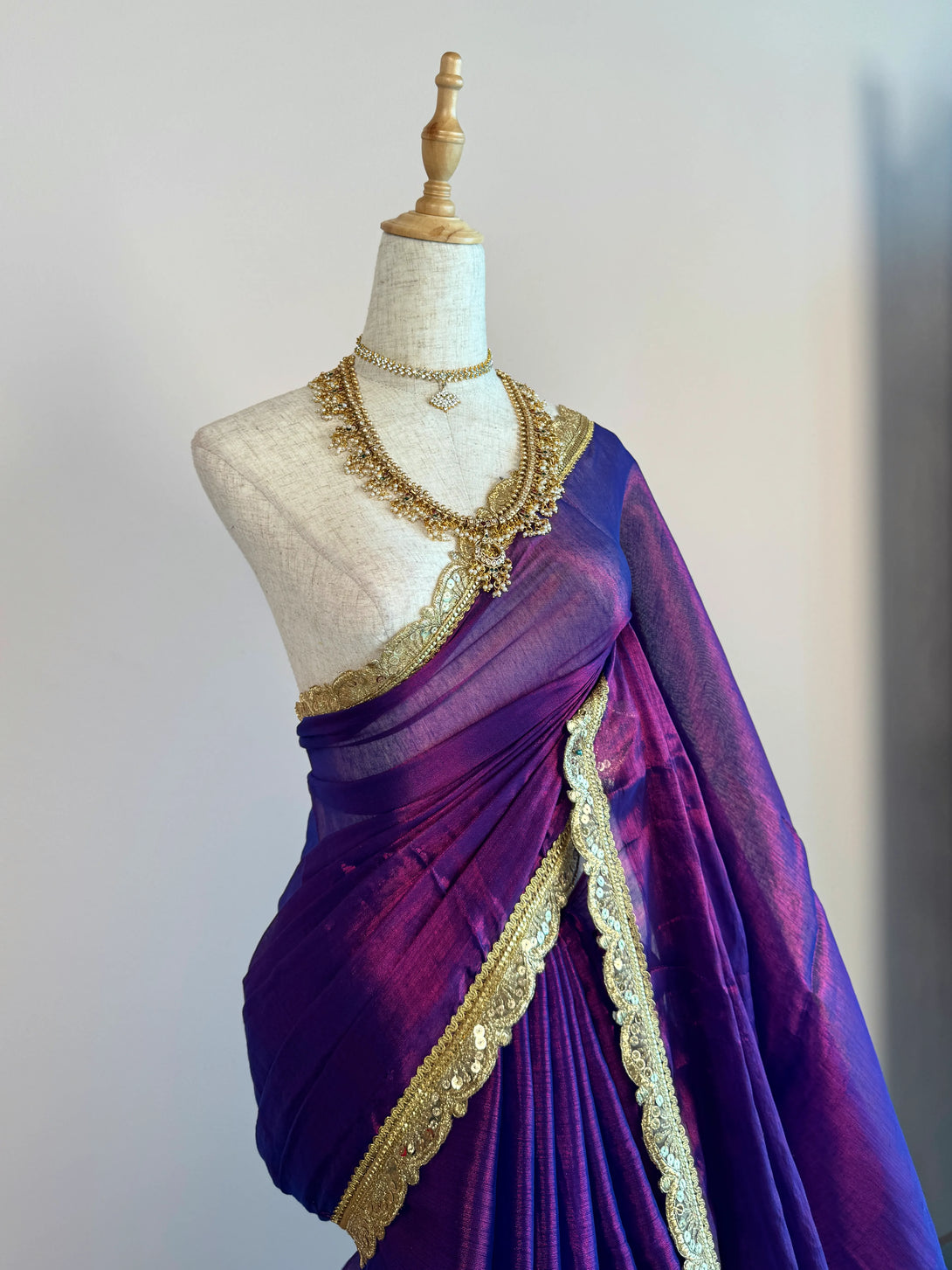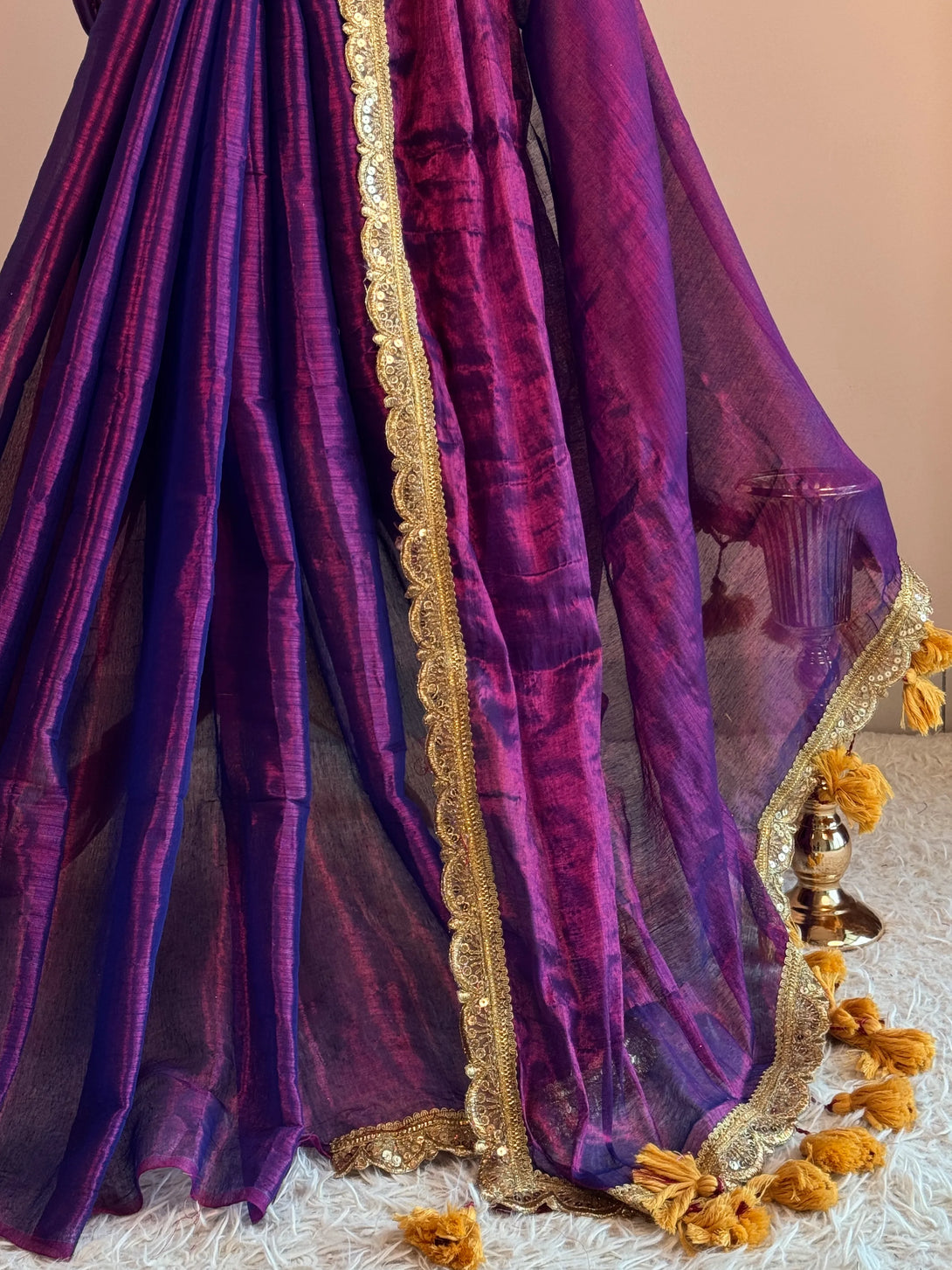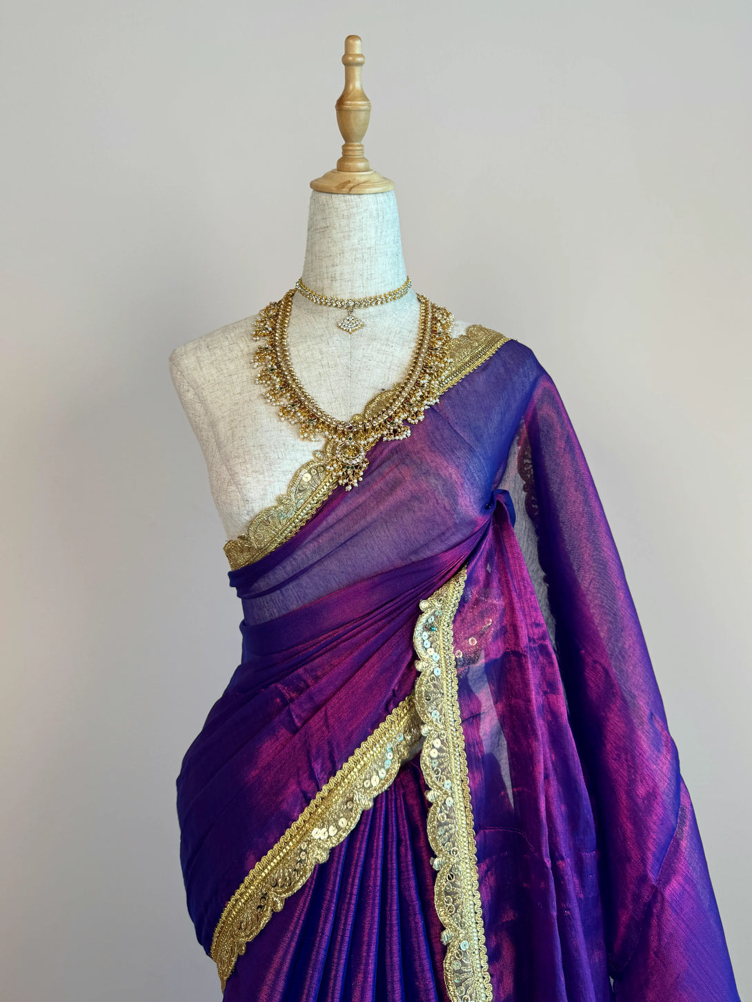 Double-Toned-Purple Handspun Tissue-Cotton Sequin-Border Bengal-Saree