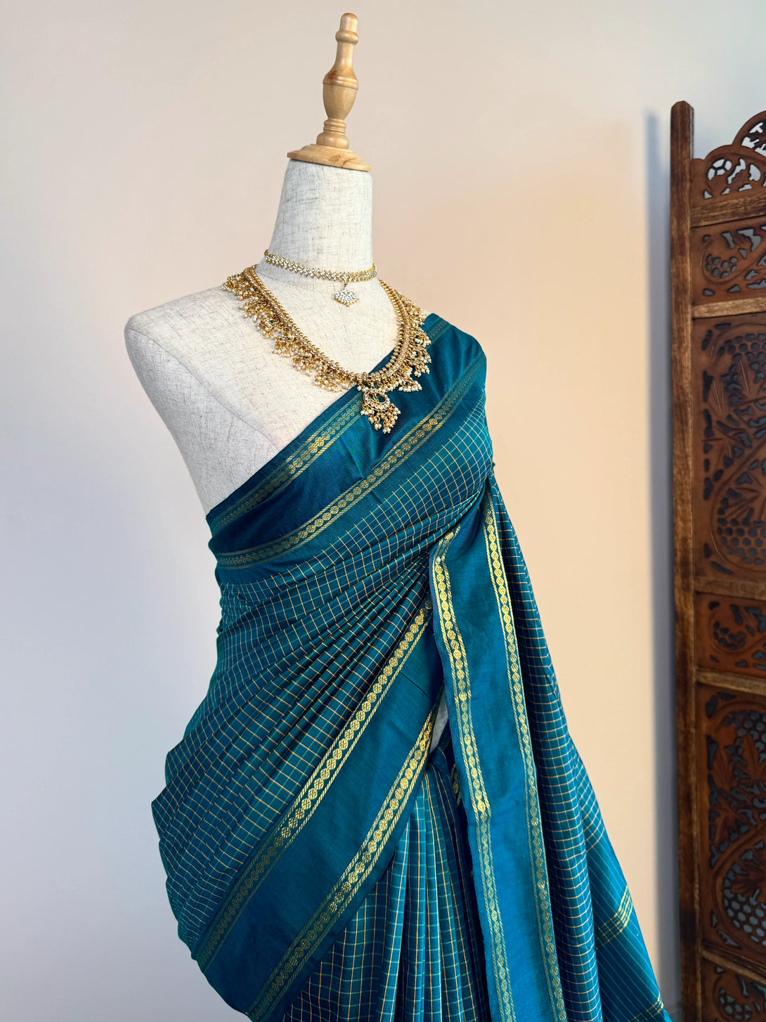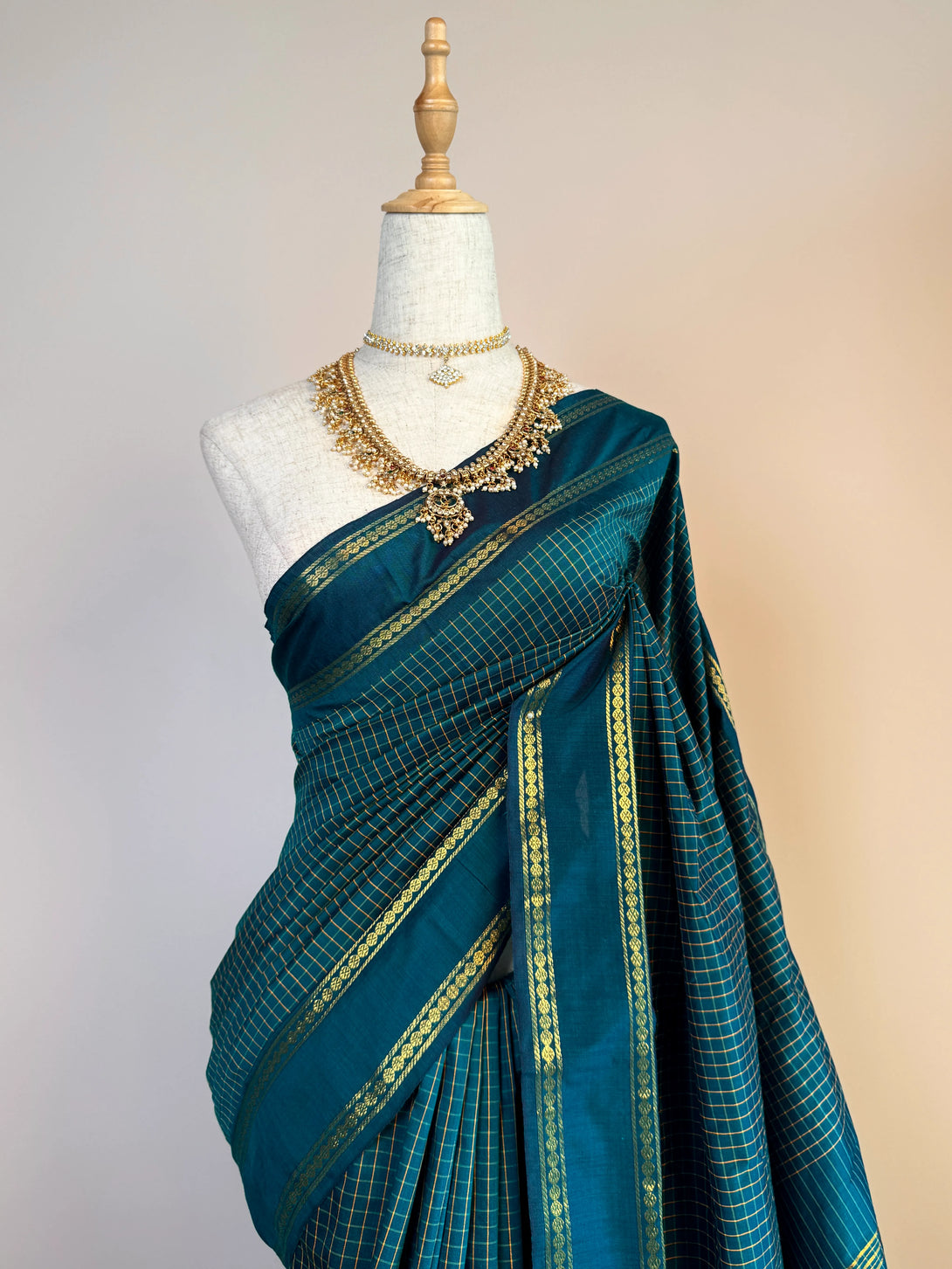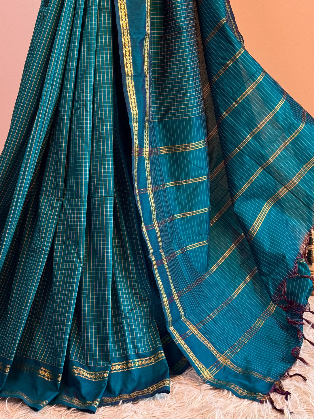 Rama-Green Pure-Cotton Zari-Woven-Kattam South-Saree