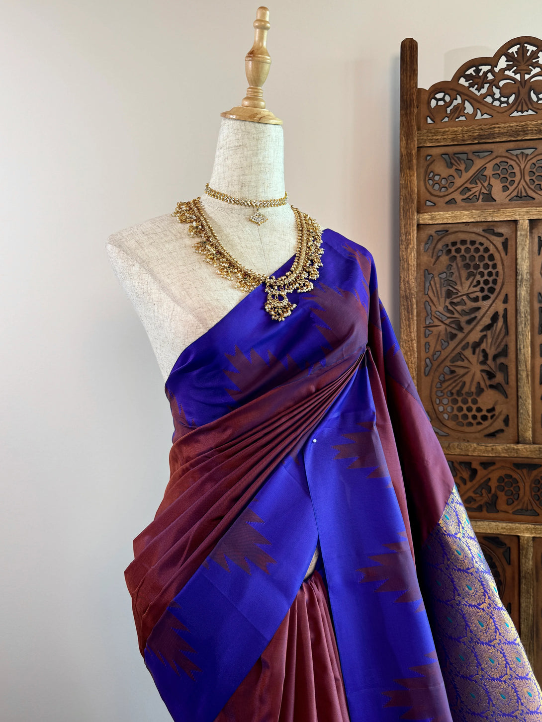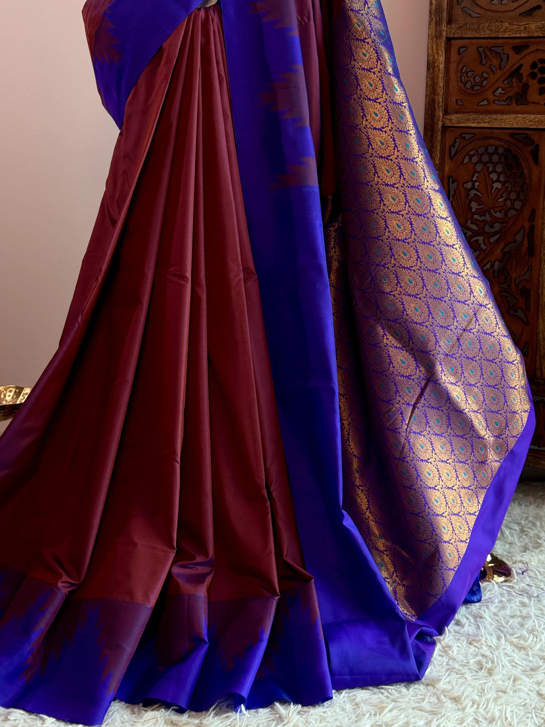 Plum-Purple Premium Soft-Silk Temple-Border Tissue-Pallu South-Saree