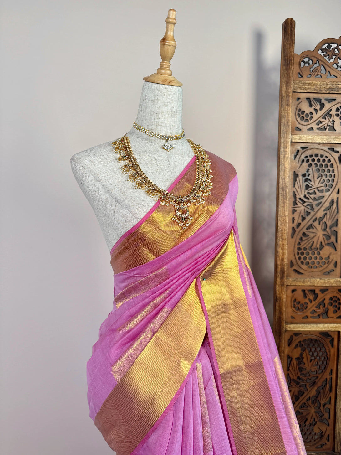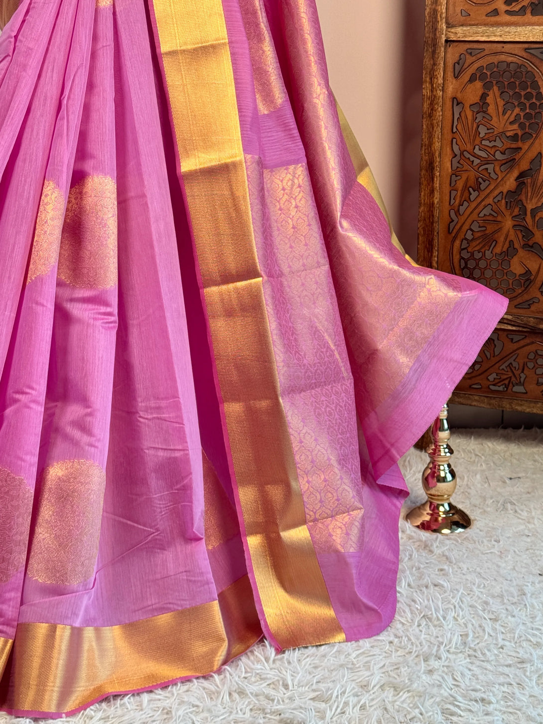 Rose-Pink Silk-Cotton Woven-Mandala-Butta South-Saree