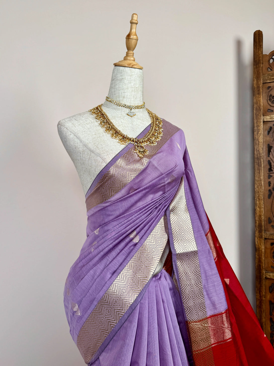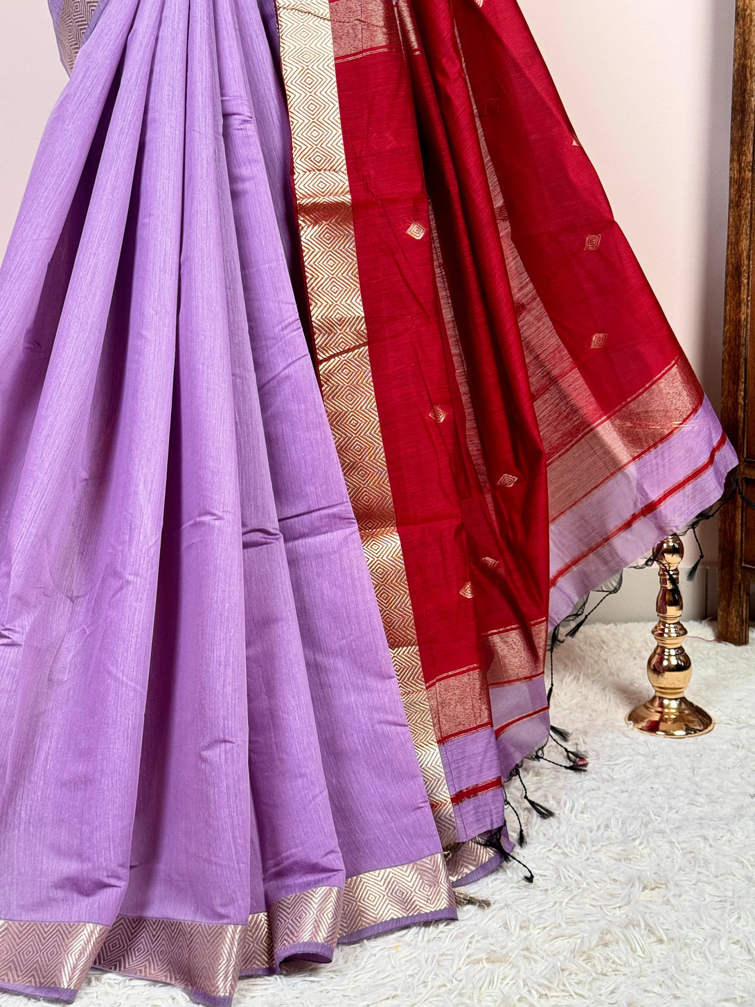 Lavender-Maroon Silk-Cotton Woven-Border South-Saree
