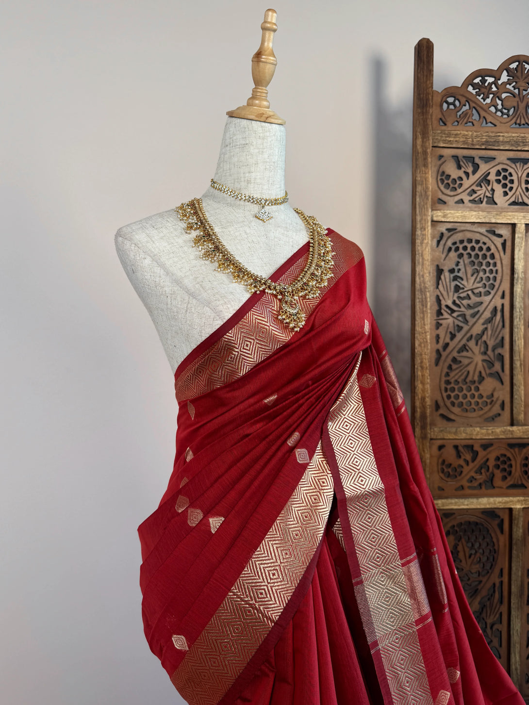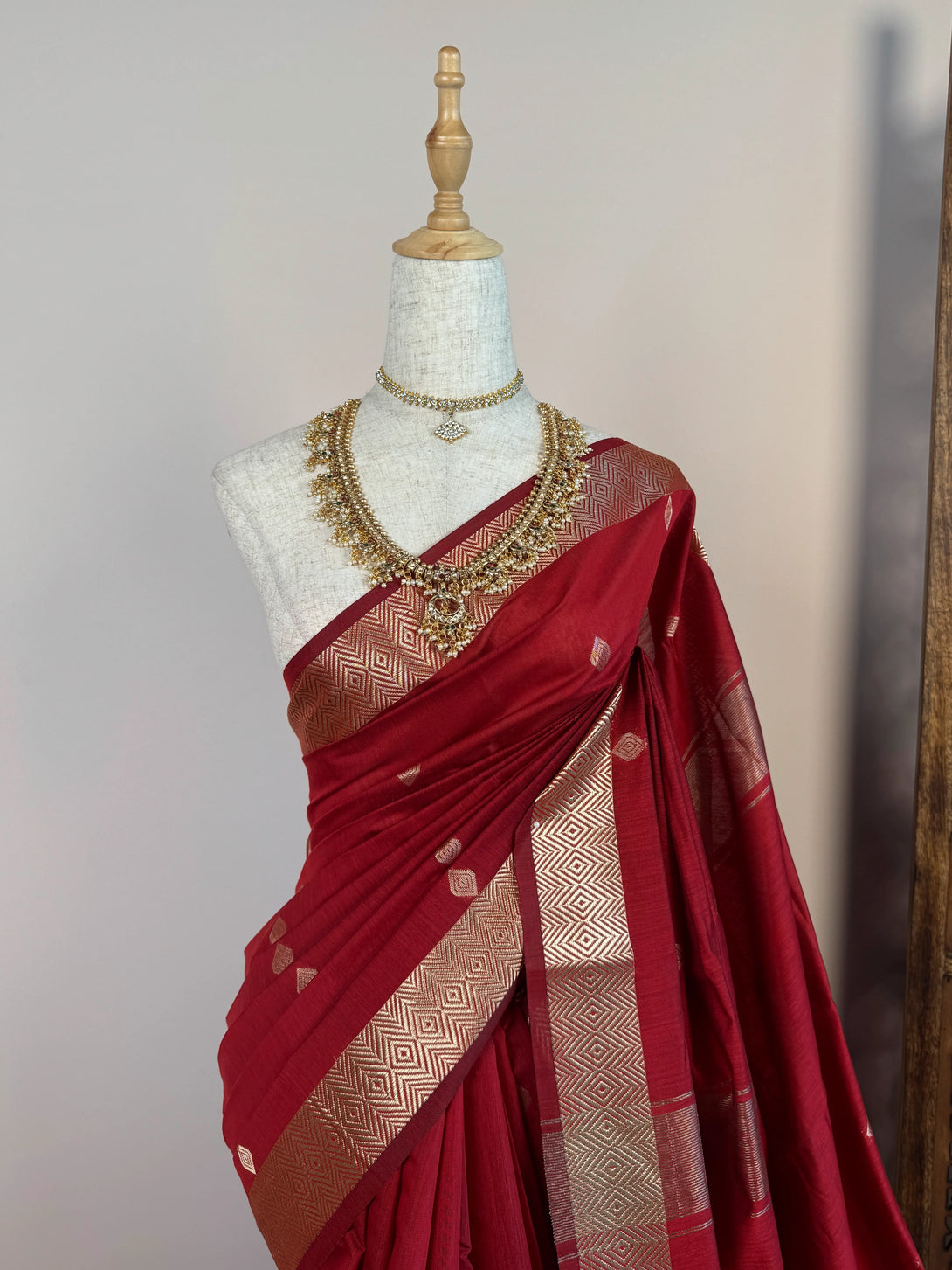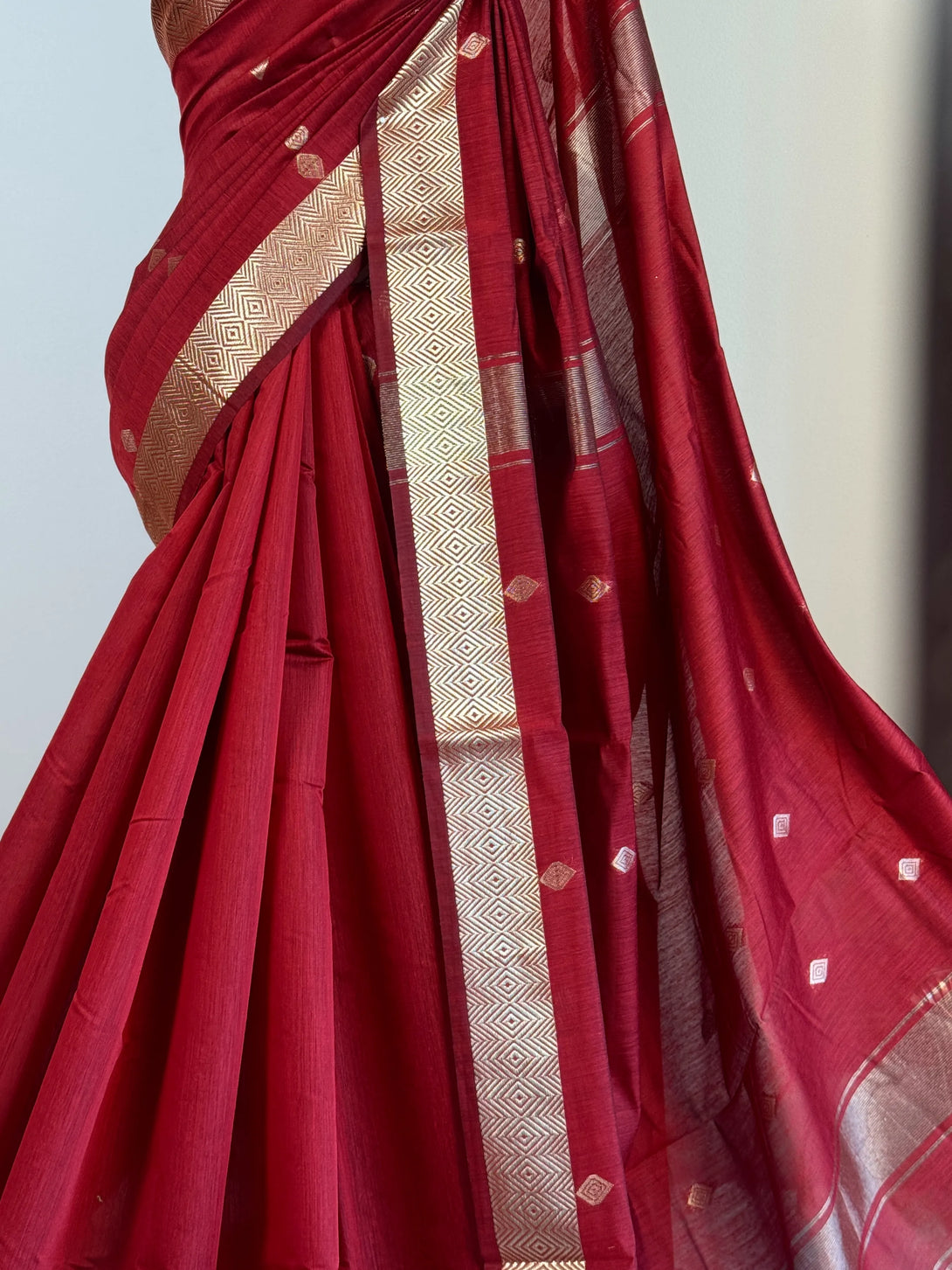 -Product Name: Maroon-Light-Gold Silk-Cotton Woven-Butti South-Saree