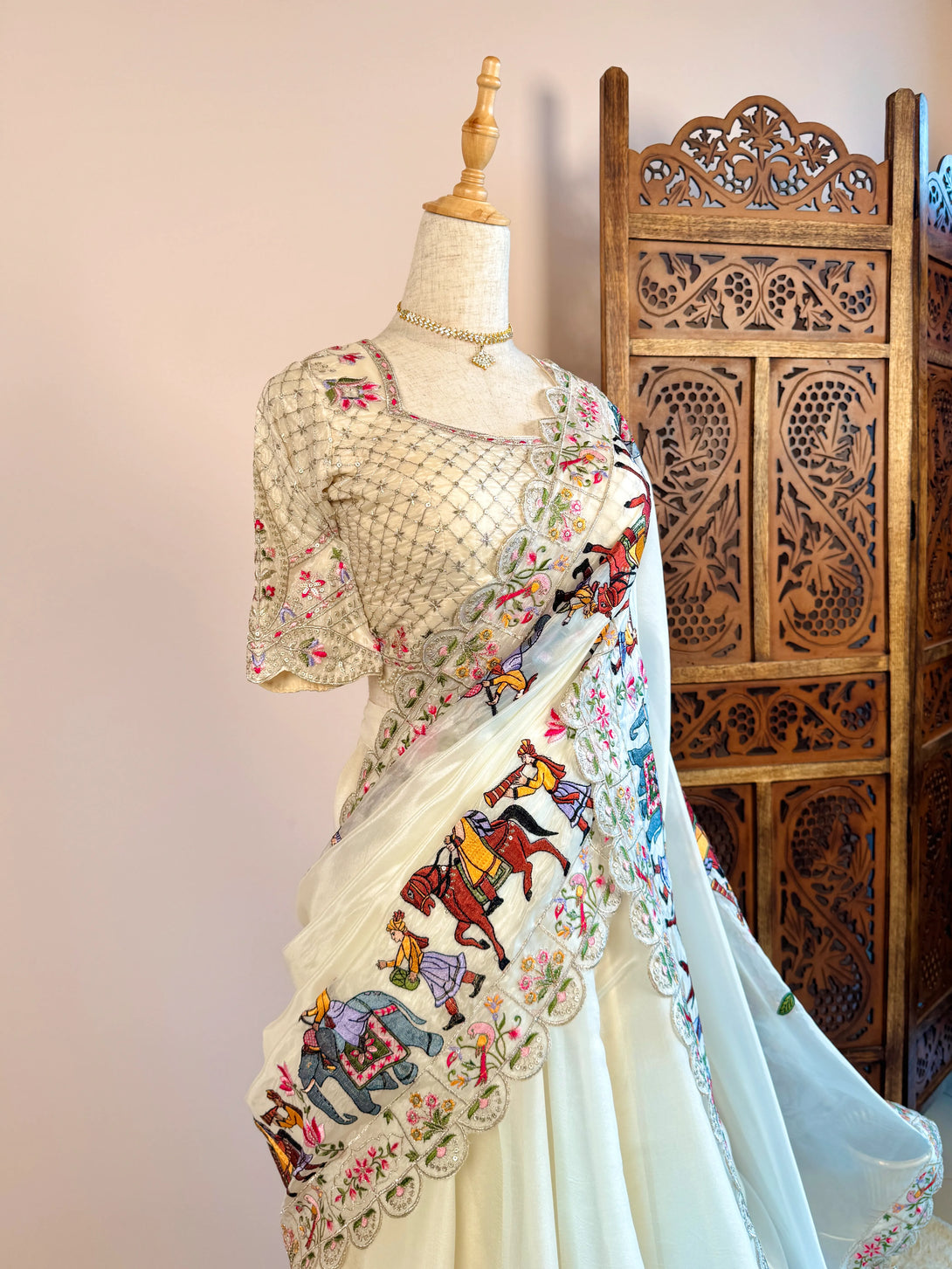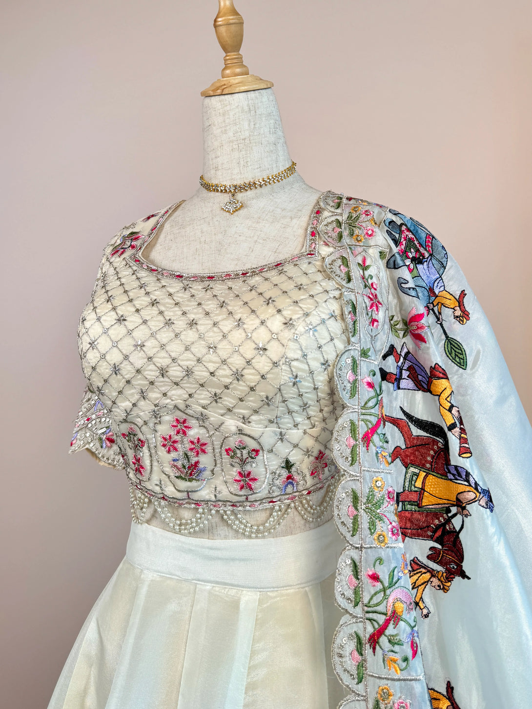 Off-White Silk-Organza Embroidered-Dupatta-Lehenga-Skirt-Blouse & Dupatta Set