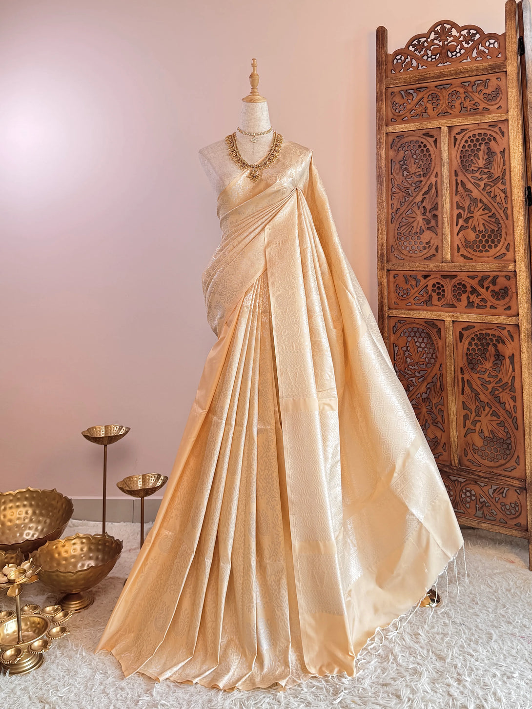 Pastel-Peach Soft-Silk Zari-Woven Borderless south saree