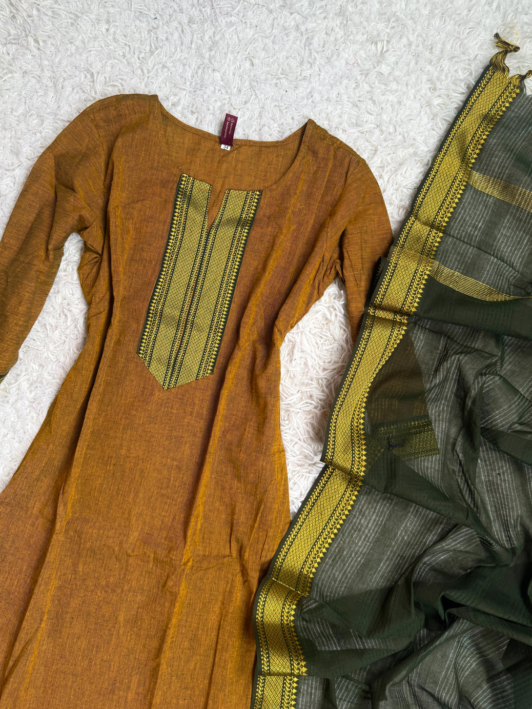 Mustard-Black Pure-Cotton Kurti-Dupatta-Pant-Set